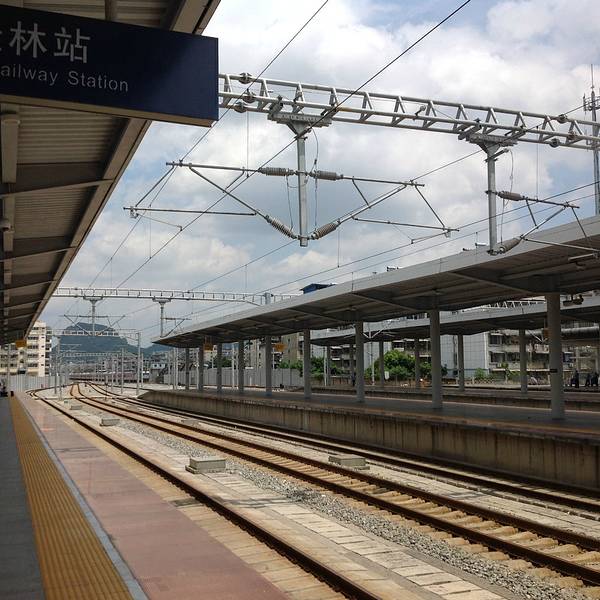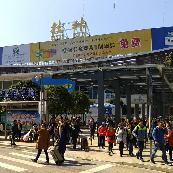 经过两个小时的路程,到了 桂林 市车站。