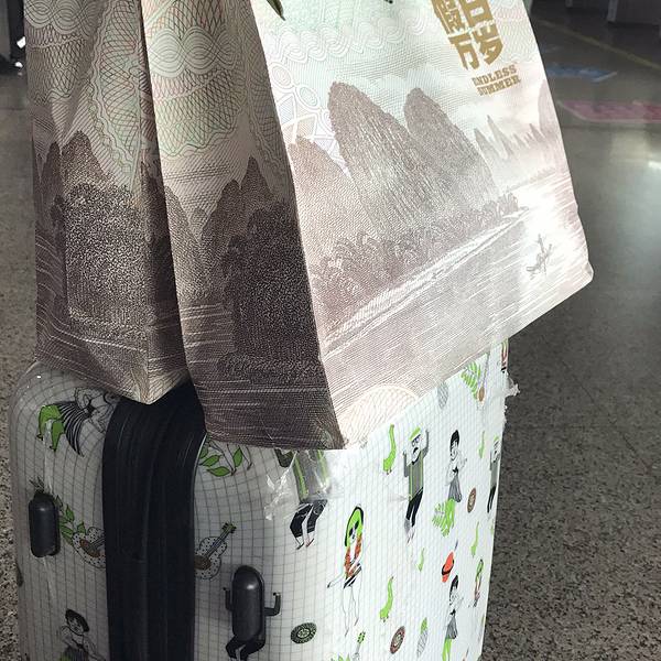 - 很喜欢珠海拱北的这个公交站台。这个袋子很是显眼,记得从珠海过机场安检的时候,工作人员还和我打趣来着