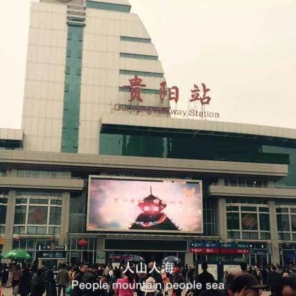贵阳火车站比想象中要小且乱,特别是门前堵车很厉害。我们是滴滴从贵阳北站到贵阳站的,如果不是在门口堵了15分钟,车费应该能从50块减到30块吧,需时约40分钟。另外,贵阳北站的出租车很少,而且拼车是合法的,...贵阳火车站比想象中要小且乱,特别是门前堵车很厉害。我们是滴滴从贵阳北站到贵阳站的,如果不是在门口堵了15分钟,车费应该能从50块减到30块吧,需时约40分钟。另外,贵阳北站的出租车很少,而且拼车是合法的,相反黑车很多,基本没人管(这个国内车站的通病),所以要不将就一下坐黑车,要不滴滴好了(提前下车)。