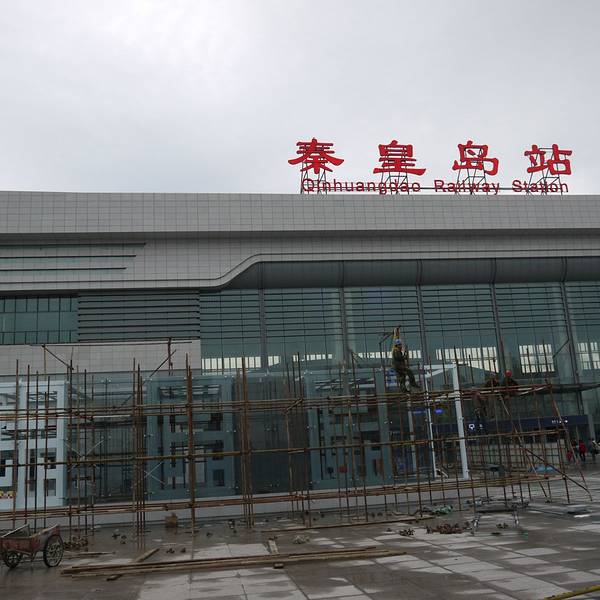 - 秦皇岛这个新火车站据说修了三年,直到现在也还没完全修好,但确实挺大气