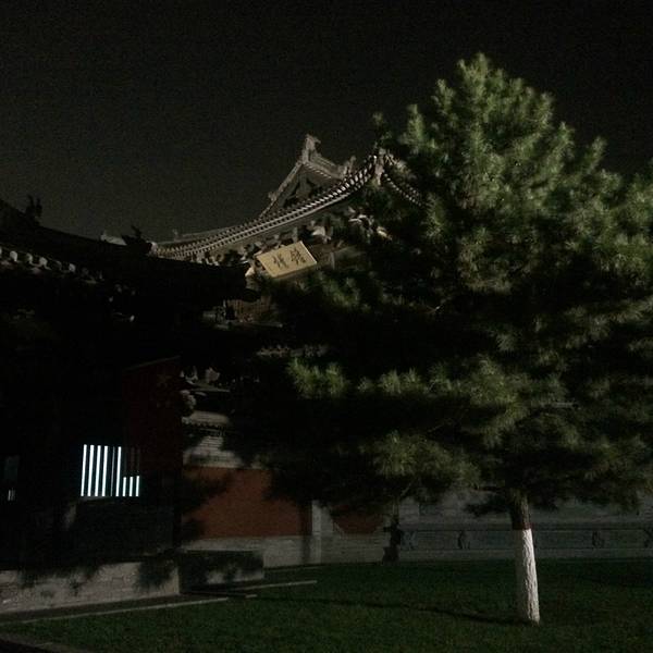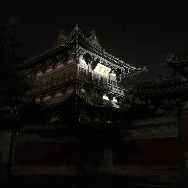 火车是半夜出发,于是1号白天还在领导家吃了巫婆汤火锅、打了掼蛋,闹到12点,小白飞车把我送回家拿了行李才赶去车站。全部行李,一个背包,一个腰包,一袋吃的,秋季出行的优势就是不用带那么多换洗衣物。大同距离合肥真是够远的,第一天完全在火车上度过,提前准备了一日三餐,吃饱睡好才能好好玩嘛。经过19个小时的颠簸,终于到达大同,大同站很小,打车很方便,出站往外走一点都是车。打车到达仿古街华严寺附近,大约才过9点半的样子,真是出乎我意料,仿古街一片寂静,我不死心得转了一大圈,除了几家酒吧,唯一还在营业的只有正新炸肉串和肯德基。后来感觉可能是转的方向不对,往鼓楼小吃城、鼓楼东街方向去,也许还有营业的店铺;另外,大同是个北方小城,秋冬季节晚上气温低,即便是十一期间,晚上也确实没什么人出来。夜晚的华严寺钟楼外墙夜晚的华严寺鼓楼外墙华严街上的灯打烊的凤临阁钟楼。