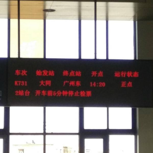 - 19点30前往大同火车站第三候车室,等待K962次列车(临汾—沈阳。大同站。从这里经过前往第三候车室