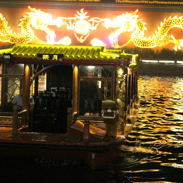 等到晚上有点黑了我和先生才出来进了夫子庙,进了北门一直走,就像晚上的商业街,大大小小的银饰品店,服装店,鞋店,小吃店等等~应有尽有,可惜的是我很穷,在一家外贸店看中一件森范儿的长衫,张口要1200块啊!哭穷~~~