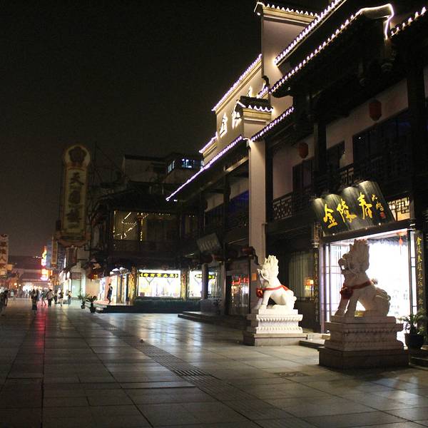 离开玄武湖,直接进了地铁站,夫子庙出来的,大概走了5分钟左右到7天酒店,就在夫子庙北门。附近的街上都是大大小小的店面,有服装店有饰品店,相对来说,饰品和北京商场饰品店价格差不多。到了酒店已经前胸贴后背,经前台推荐去了“南京大排档”。