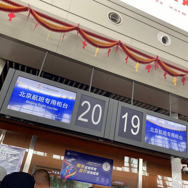2019/8/29 早上10点多就起床了,收拾了一下行李,然后吃个早点,11点左右,包车小哥就过来接我们去机场了~~还是挺远的,开了大约一个小时,还要过收费站。到了那已经12点了,然后跟小哥道别,约定明年再来玩~~转...2019/8/29 早上10点多就起床了,收拾了一下行李,然后吃个早点,11点左右,包车小哥就过来接我们去机场了~~还是挺远的,开了大约一个小时,还要过收费站。到了那已经12点了,然后跟小哥道别,约定明年再来玩~~转身的时候还是有点小难受的[大哭][大哭] 我们的机票是下午3点的,所以还早,这个机场不大,在托运行李,办理登机牌还是都挺快的,人也不多 这个机场的各种标识写的也是挺清楚的,第一次来,还是比较容易找到自己想要去的登机口~~ 这个机场内部挺整洁的,里面的小商店也很多,各种各样的特色产品都有~~ 最后~~这次旅程算是真正的结束啦 明年再见!!