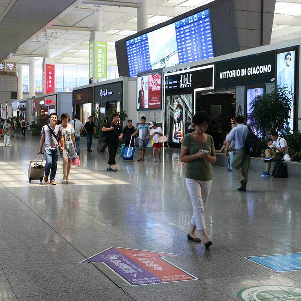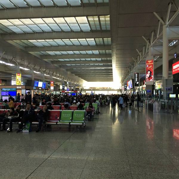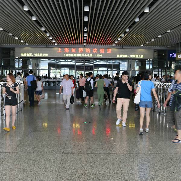 上海虹桥站位于上海市偏西部,东邻上海虹桥国际机场T2航站楼,是上海虹桥综合交通枢纽的重要组成部分,是亚洲最大的交通枢纽之一。上海虹桥站与运营中的上海站、上海南站实现明确的功能分划,虹桥站主要负责高铁的运输,而上海站、上海南站则主要为动车、普速列车旅客提供服务,最终形成长三角及国内快速、便捷的客运网。到达上海虹桥站的主要方式为上海地铁2号线(5:33~22:48)、上海地铁10号线(5:55~22:00)。由地铁虹桥火车站出站后为上海虹桥站的B1层,该层为到达层,乘坐自动扶梯上至2F即为出发层,列车开车前5分钟停止检票,由于上海虹桥站面积极大,旅客务必预留充足时间。