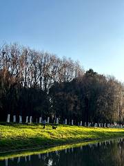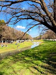 一到这里就被狠狠治愈!蜿蜒的小河穿流而过,两岸是大片开阔的青草地,高大的树木错落林立,阳光透过枝桠洒在草地上,光影斑驳,氛围感直接拉满✨ 没有商业化的喧嚣,只有流水潺潺、鸟鸣阵阵,视野开阔不拥挤,不管是搭帐篷野餐、遛狗散步,还是发呆晒太阳,都能找到超舒服的位置。