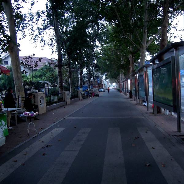 - 清晨6点多,马路上,行人稀少从济南火车站走到这里,在天桥南站等待K51公交车。旁边的座椅有旅客在休息