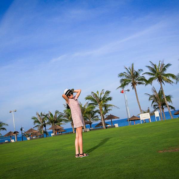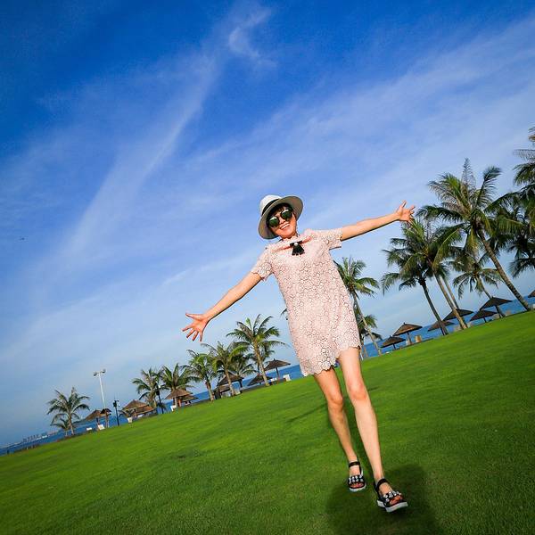 到达沙滩之前是一块大草坪,我拍了此行唯一的几张个人照。。。哎呦,亲子游,单独出镜的机会几乎没有啊 展开