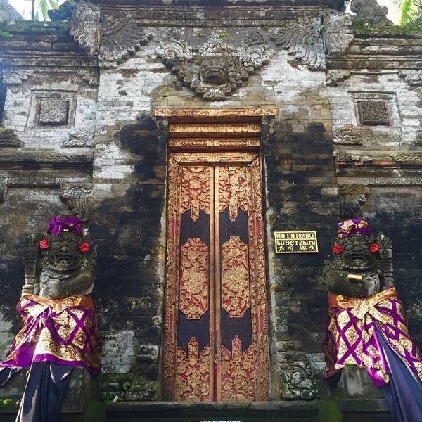 浓郁的民族风格和特色的建筑保存完好每人一万印尼盾(约合人民币5块多)交给寺庙外面的工作人员,用免费提供的纱笼包裹住下半身后我们进入皇宫,这里准确地说应该是乌布皇帝供奉祖先的寺庙。浓郁的民族风格和特色的建筑保存完好。