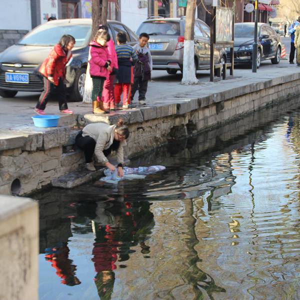 这是百花洲,珍珠泉泉群汇入大明湖之前的最后一处静水,常能许多人在此捞虾钓鱼。曲水亭街一度和其他老城区街道一样,道路狭窄,房屋脏乱,河道阻塞,臭气逼人。曾和周边居民聊起,经过一番改造之后,周边居住环境确实有了明显改善,但是临水,夏天蚊子仍然很多,没有办法。石板桥、青砖、老屋、大鱼缸……所有这一切你看到的都是修缮之后的产物,创意手工店和饭馆取代了住户,虽然干净整洁了许多,但也不是原来的风貌了,这应该是许多旅游街区共有的遗憾吧。不过水依然是极干净极美丽的,泉水多到你难以想象的程度,五步一泉,十步一柳并不夸张。位列七十二名泉中著名的泉水就有双忠泉、刘氏泉、腾蛟泉、濯缨泉等多处。这里的每一个小院中都能找到泉水的身影,或者是一方泉池,或者是一口井,或是一条小溪,四季不断。一边是青砖白墙的老屋,一边是绿藻飘摇的清泉,十分诗意。曲水亭街冬游夏游两相宜,最好是秋天,泉水最盛,秋水清澈见底,像清澈的眼睛。冬天就像老舍先生所写“那水呢,不但不结冰,倒反在绿萍上冒着点热气,水藻真绿,把终年贮蓄的绿色全拿出来了”,“看吧,由澄清的河水慢慢往上看吧,空中,半空中,天上,自上而下全是那么清亮,那么蓝汪汪的,整个的是块空灵的蓝水晶”。街上白气氤氲,青砖垂柳反而看不真切了。看这婆娑的倒影,和摇头摆尾的水草,蓝蓝的天空,确实极有意境。交通:曲水亭街北边是大明湖南门,西边一点就是芙蓉街,周围还有府学文庙、关帝庙等小景点可以一并游览。南边从芙蓉街进入的话可以坐3路、101路、k50路、k59路(芙蓉街拐到曲水亭街的小巷比较隐蔽,不仔细找容易错过),北边从大明湖南门进入可以坐11路、41、k109、k54、k95、k98。