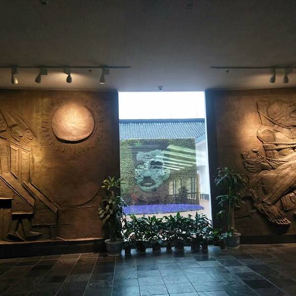 整体景点人不多,参观舒适鲁迅纪念馆位于虹口区的鲁迅公园东南角,最近的地铁站是3、8号线的虹口足球场站,出1号口,直接就能看到公园。场馆免费开放,具体时间为上午9点到下午16点,而且全年无休。场馆前是鲁迅先生的立像,大步向前,正...鲁迅纪念馆位于虹口区的鲁迅公园东南角,最近的地铁站是3、8号线的虹口足球场站,出1号口,直接就能看到公园。场馆免费开放,具体时间为上午9点到下午16点,而且全年无休。场馆前是鲁迅先生的立像,大步向前,正如历史中他为国人精神奋斗一样。场馆大厅横跨两层,大跨度给人很好的空间感。场馆面积不大,只有二层是展厅,展品安排的密度很大,游览时间约为2小时。这个石膏像很特殊,因为他是凹陷在墙壁上的,看上去非常有立体感,最神奇的是,你无论站在哪个角度都感觉雕像在对着你。场馆内有2个放映室,一间放映鲁迅先生的散文诗集《野草》,另外一间放映鲁迅先生在上海逝世后追悼会及送葬的资料片。放映室有椅子,可以边看边休息,实在方便。复制的内山书店,里面的书真的出售哦。在二层展厅的中间是一个天井,里面用绿色植被制作了鲁迅先生的头像,非常别致。