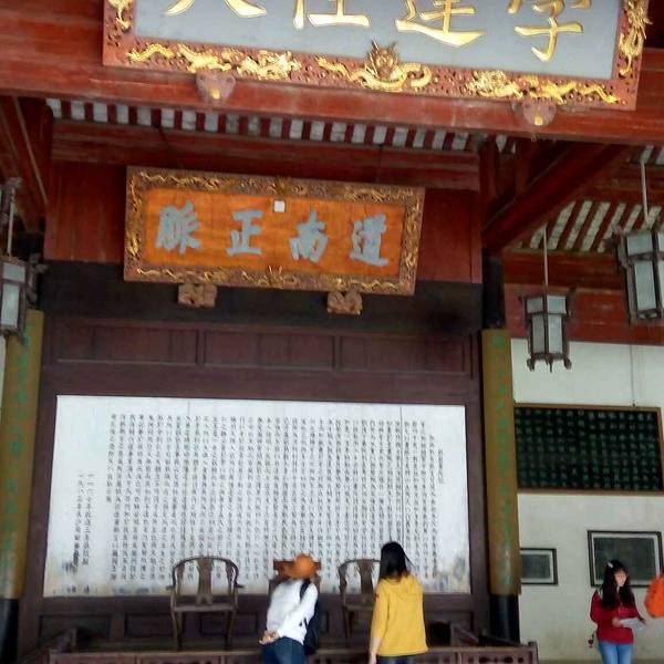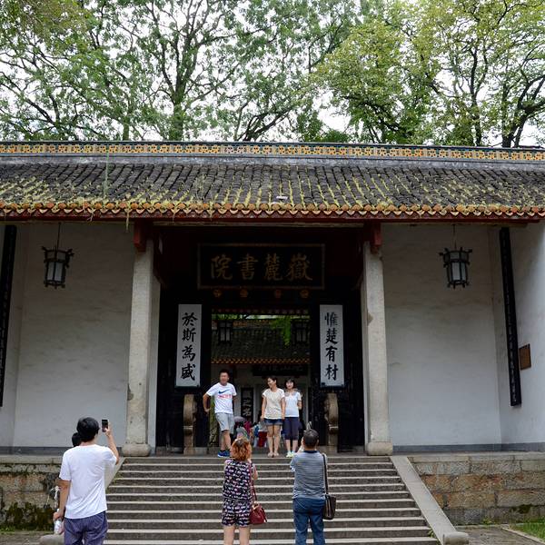 欧阳询的字镌刻而成的。当我踏进书院,我不由得轻缓了脚步,也许是生怕吵醒了那些古圣先贤吧!轻轻地抚摸着这些古老的门窗,似乎依稀能寻找那写历史遗留下的苍痕,细细重温着他们的宗门巨作,远离地感受他们的人格魅力,穿梭其间的游人们,也应该被这古朴、清新、优美的环境所吸引,似乎这里的砖也浸润了书卷般的灵性,个个都铿锵有力。经过赫曦台,我便来到了大门。门的两旁有双面浮雕的汉白玉抱鼓石,大门的正上方悬挂宋真宗皇帝的“岳麓书院”御匾。两旁有联曰:“惟有楚才,于斯为盛”,此等口气,非一般人敢下言,但用在这里却一点也不显得狂妄,只有这样宽阔的胸襟才容下了那许多的济济英才,联想里敢知出岳麓书院人才辈出的事实。据说,此联的上半部分出自《左传》,下半部分出自《论语》,原是个求对的上联,但无人能对,后来有人发现这个对联拆开也能自成一对,所以就成了现在所看到的这个样子。往前走就是二门,原称礼殿,明代嘉靖元年扩建文庙时,始建二门。为五间单檐开山,中三间开三门。门额正面悬挂“名山坛席匾”,两旁有对联“纳于大麓,藏之名山”,这都充分印证了岳麓书院深厚的文化内涵和人才辈出的事实。 展开