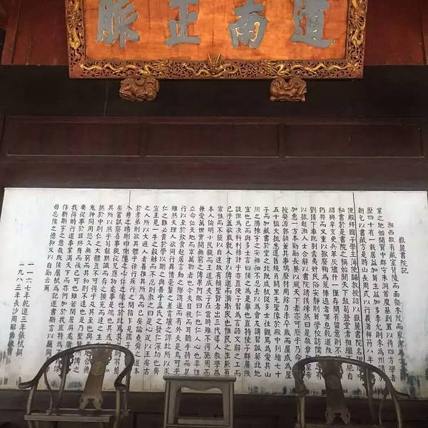 漫步来到岳麓书院,就可以看到正前方赫然悬挂书写“千年学府”四个大字的扁额。字是后人根据唐代书法家