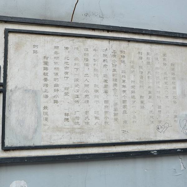 甜爱路两侧有着28首中外著名爱情诗篇,俗称“爱情墙”。有趣的涂鸦第七站:甜爱路 甜爱路虽然全场只有五百多米,但被称为上海最浪漫的马路。从路名到墙上所挂着的各种有关爱情的诗和涂鸦,都透露着浪漫的气息。甜爱路两侧有着28首中外著名爱情诗篇,俗称“爱情墙”。街角还有两家...第七站:甜爱路 甜爱路虽然全场只有五百多米,但被称为上海最浪漫的马路。从路名到墙上所挂着的各种有关爱情的诗和涂鸦,都透露着浪漫的气息。甜爱路两侧有着28首中外著名爱情诗篇,俗称“爱情墙”。街角还有两家精致的小店,可以在这里喝上一杯下午茶。甜爱路大约十分钟就可以逛完,逛完后可以去附近的多伦路逛逛,多伦路邻近鲁迅公园,是一条长五百多米的“L”型小路。沿路随处可见红砖或青砖的复古小洋楼和人物雕塑,很适合拍照散步。砖或青砖的复古小洋楼和人物雕塑,很适合拍照散步。鲁迅、茅盾、郭沫若等众多文豪曾在此居住,现今有不少艺术展馆,可以感受到浓郁的文化气息。多伦路上还有坐落着许多小资情调的咖啡馆和小型的民间收藏馆,比如筷子博物馆(多伦路191号)、南京钟博物馆(多伦路193号)、文风奇石藏馆(多伦路189号),其它还有藏书票馆、集报馆、古陶瓷收藏馆、源宝楼等。