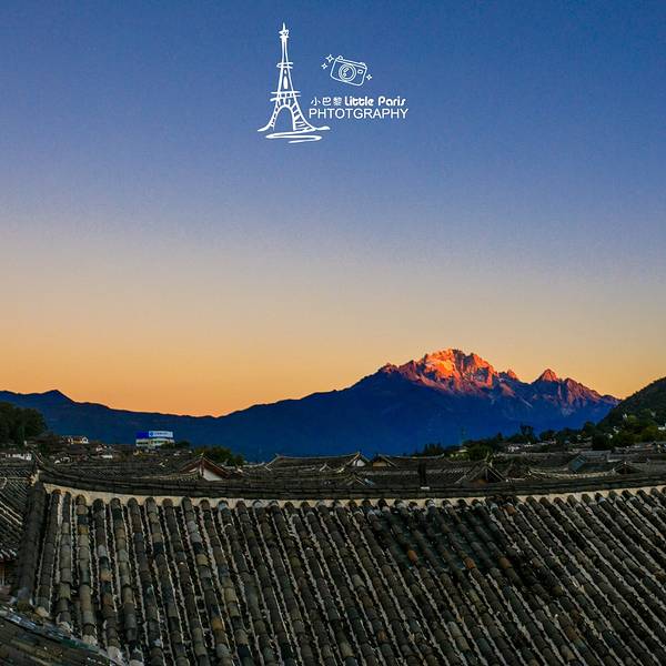 可惜我白天去了玉龙雪山,还好赶在天黑之前又回到了古城!赶紧上屋顶拍照去!