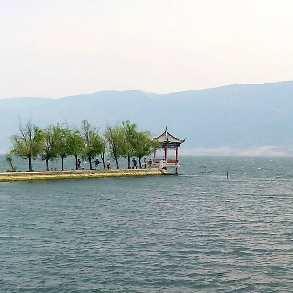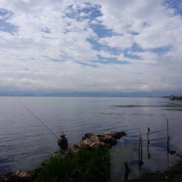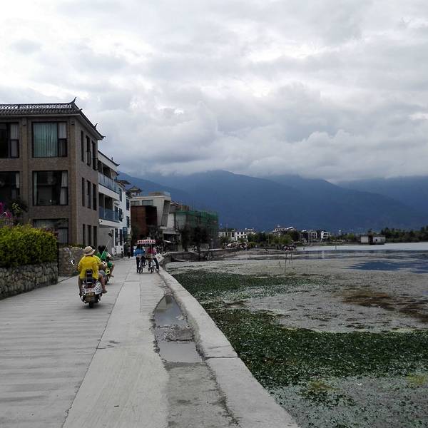 沿着洱海边行走最大的感触就是生活在这里的人真的是很会享受生活啊,面朝大海,真的做到了春暖花开,这不就是海子追求的终极目标吗?如今眼前即使没了阳光的洱海依然是那么让人神往。一条长堤修筑在洱海边,可以信步走上去,脚下是清盈透澈的洱海水,水畔伫立着婷婷的柳树,柳叶婆娑肆意横飞给了安静的洱海一份活力。一辆他人的自行车停靠在柳树下,又给人于无限的想象。