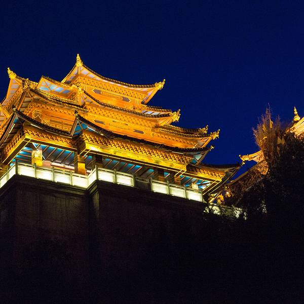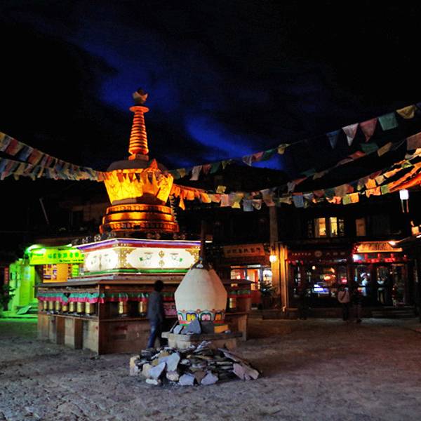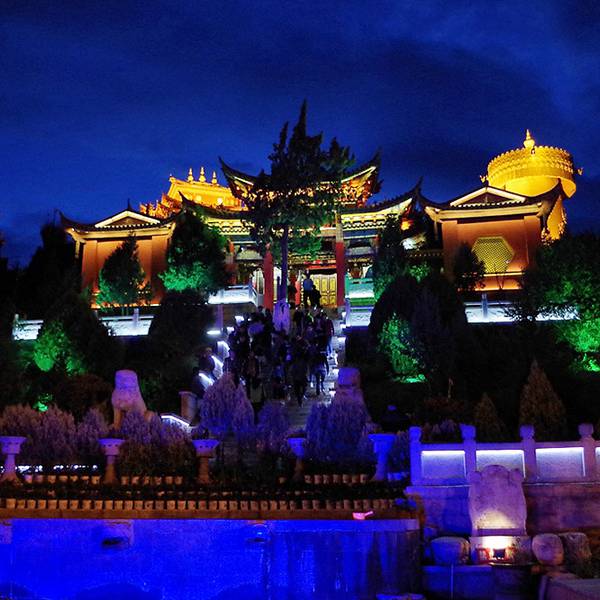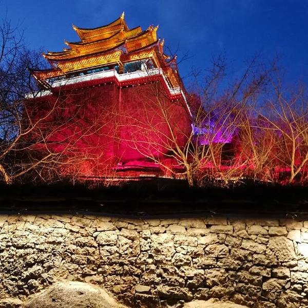 古城依山势而建,路面起伏不平,那是一些岁月久远的旧石头就着自然地势铺成的,至今,石板路上还留着深深的马蹄印,那是当年的马帮给时间留下的信物了。它曾是藏民心中的香巴拉理想国,那些岁月久远的石板路上曾留着深深的马蹄印。土蕃在这里的大龟山顶设立寨堡,现在山上有个大转经筒,一定要十余人合力才能将它转动。在古城享受悠闲的时光,一定要品尝一下牦牛肉火锅,可惜阿布老屋已经不再。古城门口和马路对面都有租借自行车,基本都是捷安特,20元一天,这是游览香格里拉的最好方式。一些发往景区的班车也在门口等候。每天清晨和傍晚,古城周边的当地居民都会自发聚在一起跳舞,而且非常欢迎游客加入哦。夜色下的龟山,夜色下的古城都非常迷人。