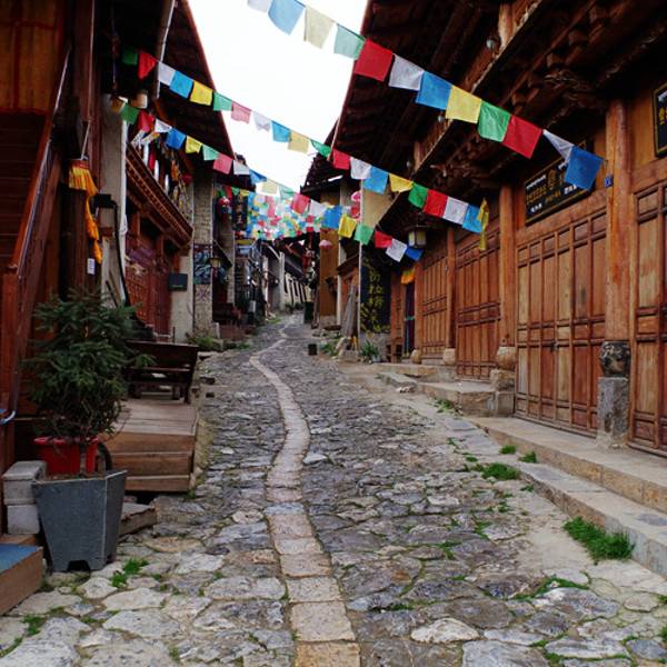 独克宗古城位于迪庆藏族自治州香格里拉县东南隅,为唐代吐蕃王朝所建。“独克宗”是藏语发音,意为“月光城”和“建在石头上的城堡”。古城依山而建,路面就地势铺筑石板,自然起伏。至今,在石板路上甚至还能看出马蹄的印迹,这是岁月久远的马帮留下的信物。 古城的建筑布局犹如八瓣莲花,中心是月光广场,古朴的藏式木屋一幢接一幢环绕在四周,当地百姓在这里平静地生活。广场西侧是大龟山,又称龟山公园,龟山顶上有载入吉尼斯世界纪录的世界大转经筒,要三个人一起用力才能转动。龟山公园西北侧的四方街,每晚的藏族锅庄舞总是能吸引大量游人参与其中,如果恰好遇到,一定要参与到这份快乐中去。 月光广场北侧的院落是“迪庆州红军长征博物馆”。博物馆入口处是建于清代的中心镇公堂,又称藏经堂,建筑风格融汉、藏、纳西为一体,颇具观赏价值。长征博物馆南侧是迪庆州博物馆。馆内陈列有新石器时代的文物和藏医药展示,不妨来此观摩一番。 古城内大部分民居都已被改建成客栈、餐馆和商铺,商铺里售卖当地特色的藏刀、牦牛肉、藏饰等,餐馆餐食也多以川菜和藏餐为主,牦牛肉火锅和酥油茶、糌粑等是一定不要错过的。客栈多以藏族特色为主,价格相对新城宾馆略贵,但胜在风情浓郁,每天人流络绎不绝。 2014年1月11日发生的独克宗大火,使得大片藏民居变成废墟,非常可惜。但是徜徉其中,仍然可以辨认出当年古城的辉煌。