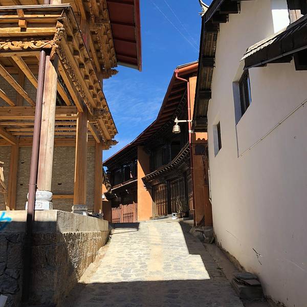 独克宗古城距离香格里拉客运站大概4km左右的样子,打车的话七元就到了,但是一般客栈老板都会去接你的,独克宗古城远没有丽江古城和大理古城那般繁华,显得有些破旧,我们去的时候还有一些房子在修葺,人不是很多,买东西的店铺也不是很多,远没有丽江街道上各式各样的鲜花饼,披肩之类的,道路都是一些很崎岖的很难走的路,里面客栈很多,但是现在客栈生意都不如以前了,因为越来越多的人选择自驾游,开车来,开进古城有很多不方便的地方,所以不如在古城外面住快捷酒店了,吃饭的话这里好吃的还挺多的,比如顺顺小吃,朵朵厨房的牦牛火锅,青稞粑粑,酥油茶,味道还是很赞的,古城里面有几个租自行车的地方,可以在这里租车去纳帕海游玩,体力好的还可以去松赞林寺,20元每天。晚上的时候会有几个卖水果的出来卖,推着小推车,感觉有点原始,还有老奶奶会出来买牦牛酸奶,真的是特别酸,特别好喝,五元一杯,可以加很多很多糖的,超赞!