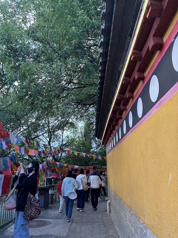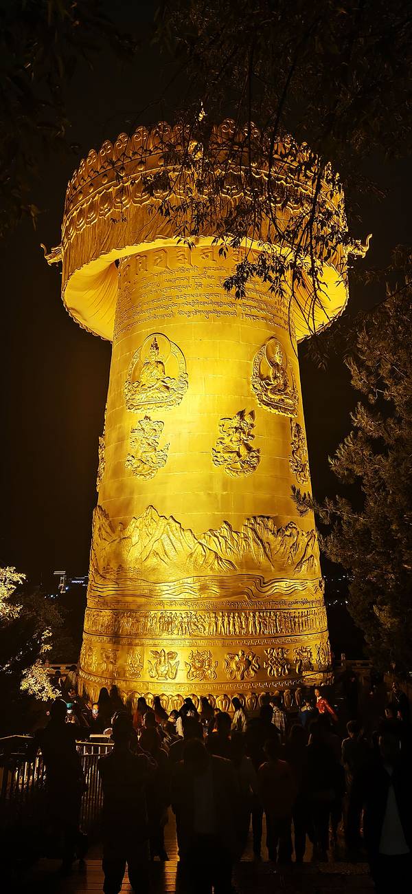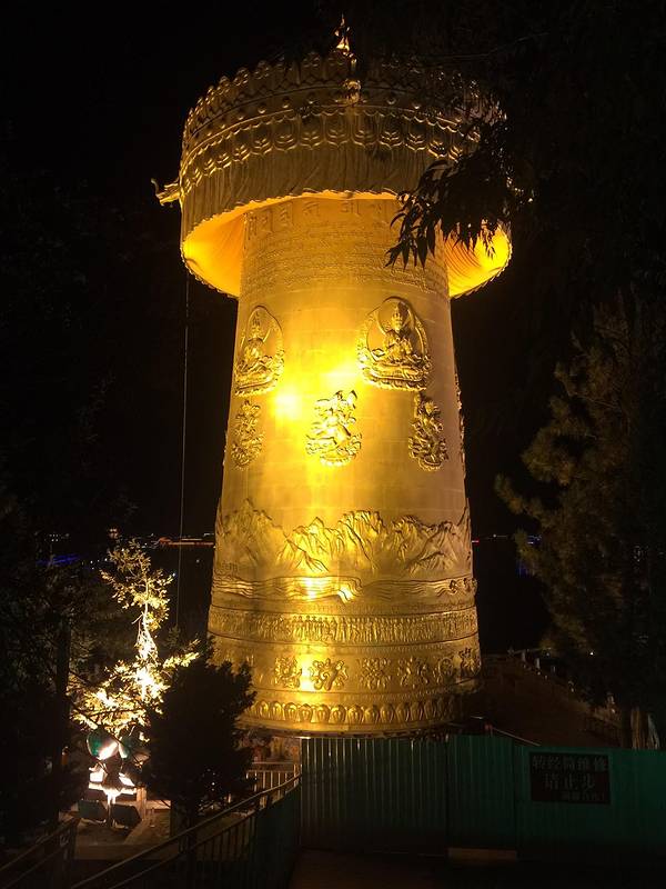 半路上的阶梯上还有卖酥油茶的阿姨们,爬累了,一块钱来一碗。大概有5层楼那么高要想转动如此巨大之经筒需众人同时着力,每顺转一周,相当于默念佛号124万声...大佛寺经筒就在龟山公园的半山腰上,很快就能爬上去。