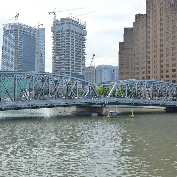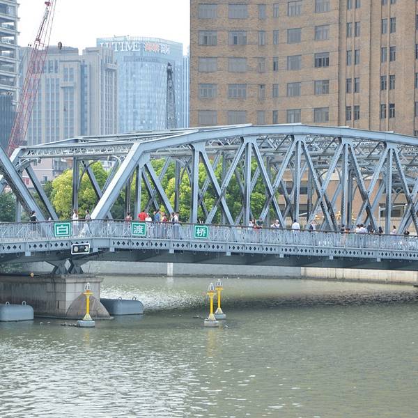 已有百年历史的外白渡桥是上海的标志性建筑之一,承载着老上海的历史文化,也见证着新上海的日新月异。只要跟早期上海相关的电影、电视剧都会在此取景,这里也是众多摄影爱好者和拍摄婚纱照的新人经常光顾的地方。 外白渡桥是一座全钢结构的桥梁,全长106.7米,两跨52.16米,是上海市区连接黄浦和虹口区的重要通道,行人和车辆分道而驶。白天站在桥上可以观赏到苏州河两岸风景,一侧为老式弄堂,一侧为现代建筑,新旧交替无不让人感慨万千。 而入夜后,远近的景观灯光将它衬得更加绚丽热闹,吸引着来往行人的目光,你可以在桥上远眺外滩的景色,上海市人民英雄纪念塔、中国银行大楼清晰可见,黄浦江对岸的东方明珠、滨江大道、金茂大厦、上海环球金融中心等建筑更是灯火通明。要是夏天来的话,在这里吹吹黄浦江岸边的风,看着轮渡上的人们,听着汽笛的呜呜声,走走看看,甚是惬意。