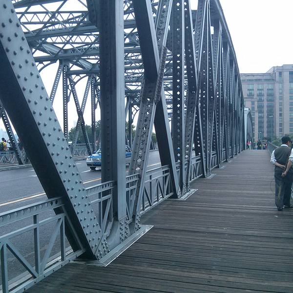 实用 不管是晴空万里还是晚霞夕照,夜景璀璨都有其独特的韵味,很适合拍婚纱照。晚上灯影效果更显朦胧美丽现今的外白渡桥,其实已经是第三代桥了。 第一代的外白渡桥—— 始建于1856年,名为“威尔斯桥”,是座木桥。 第二代也还是木桥——于1876年在威尔斯桥近侧造了另一座木桥,过桥免费。遂称之为“外白渡桥”。第三... 现今的外白渡桥,其实已经是第三代桥了。 第一代的外白渡桥—— 始建于1856年,名为“威尔斯桥”,是座木桥。 第二代也还是木桥——于1876年在威尔斯桥近侧造了另一座木桥,过桥免费。遂称之为“外白渡桥”。第三代钢架桥——到了光绪年间,木桥几经补修,已不能适应交通发展的需要,工部局决定另建钢桥代替。光绪32年(1906年),打下第一根桩,第二年竣工。该桥上部结构为下承式筒支铆接钢珩架,下部结构为木桩基础钢筋混凝土桥台和混凝土空心薄板桥墩,两孔跨经组合各52.12米,梁底标高5.75米,桥面铺设电车轨道。这就是第三代外白渡桥。现在的外白渡桥经过近年来的大修过仍然骑着连接沪东的作用,桥上行人车辆川流不息,是既有历史沉淀的景观桥也有其设计之初的桥梁的实用性。在桥上合影一边可有复古的上海情怀,对岸则有着现代的高楼林立。很值得一走。晚上灯影效果更显朦胧美丽。不管是晴空万里还是晚霞夕照,夜景璀璨都有其独特的韵味,很适合拍婚纱照。位于黄浦公园西侧,(近中山东一路),可从外滩步行过来,也可乘坐公交车。 展开