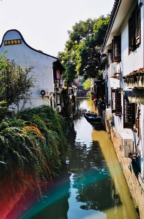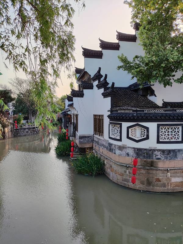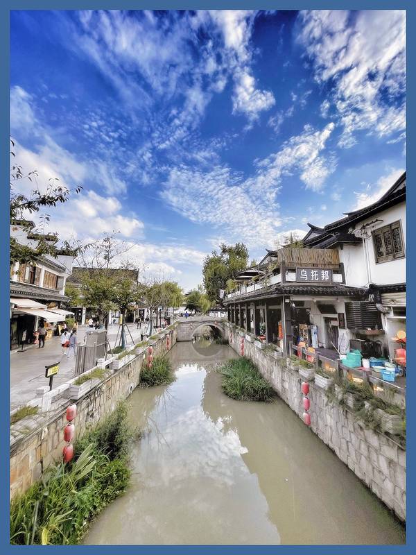 小桥、流水、人家。青砖白墙、垂柳夕阳、好一副美好而柔和的江南水乡风情的画面映射在眼前。穿着旗袍汉服、拿着灯笼油纸伞也完全不会有违和感。拍照出片也是一绝。微风徐来,水面泛起涟漪,水乡风情尽显。