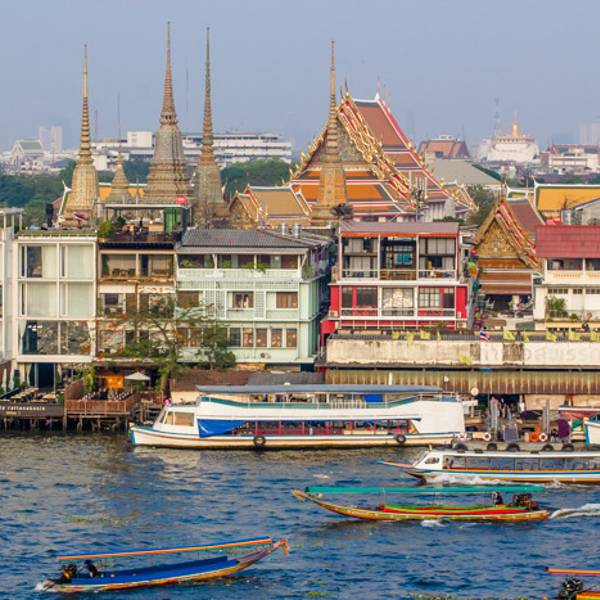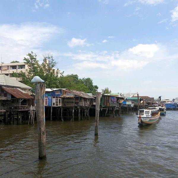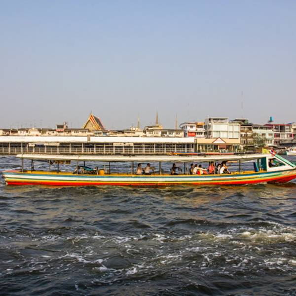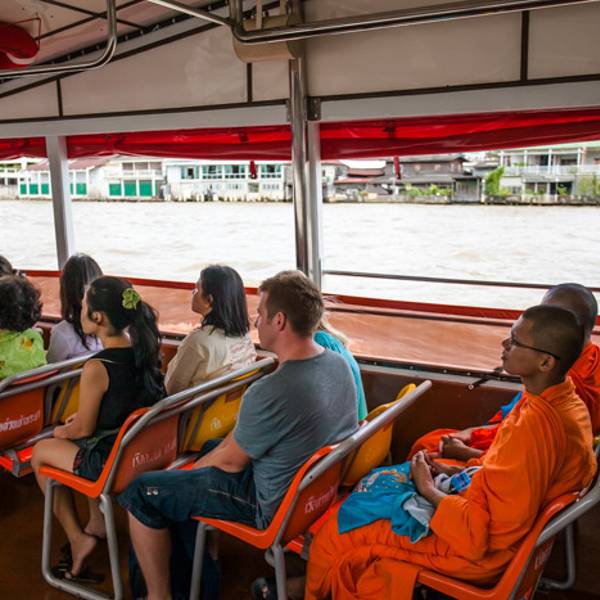 河岸东侧分布着众多公交船停靠码头,可以由其中一处乘坐一段公交船,于河流之中,身临其境地感受一番湄南河的魅力。一般乘船费用最少仅需要几泰铢;