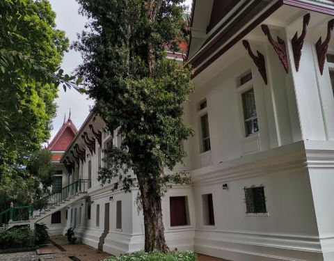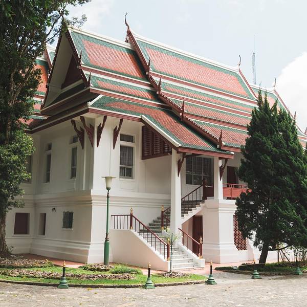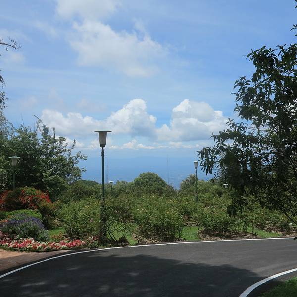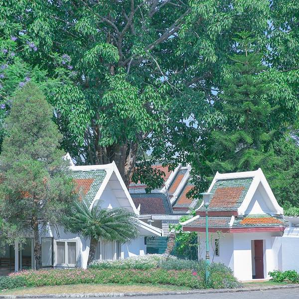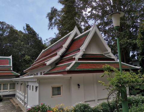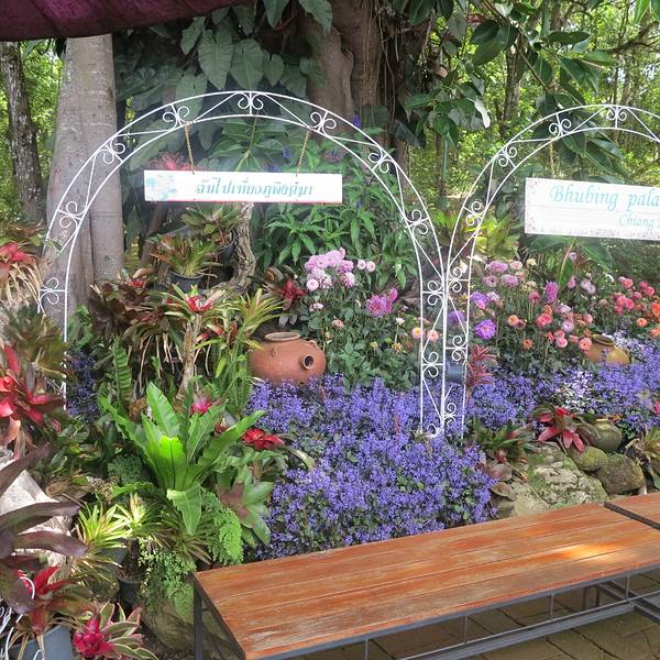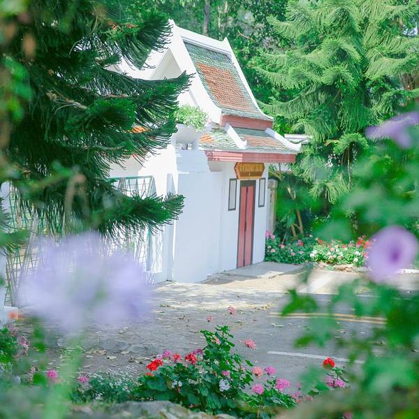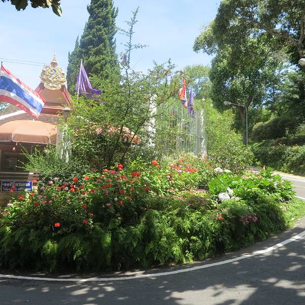 蒲屏皇宫是泰国王室的避暑行宫,于1962年建造在素贴山上。这座白墙黄瓦的泰式建筑坐落在青山之中,格调雅致,园内不仅树木葱郁,而且种植着玫瑰、鼠尾草等各种奇花异草,十分秀丽。参观时间和需知每年1月-3月王室人员会到此居住,其他月份开放游客参观。你可以在冬季或春季前往,届时气候凉爽宜人,百花盛开,景色真是美不胜收。需要注意的是,平日游客只能游览花园,周末及节假日时才能参观宫殿内部。很多人会先游览素贴山上的双龙寺,然后再去往更深处的蒲屏皇宫。这里对游客的着装有要求,不能穿短裤及露出肩膀的衣服,门口有着装示意图,也可以选择花钱租借衣服。购票后可以领一本小册子,有介绍和地图,标明了10处建筑景点,此外还散布着多处玫瑰园。整个蒲屏皇宫规模不是很大,但因为建造在山上,漫步其中别有一番风味。优美的休闲地园中的建筑包括小木屋、宫殿、水库等,其中3号景点就是主要的蒲屏宫。蒲屏宫楼下是王卫和长官的住宿处,楼上是国王的下榻处,北边还有“赏鸟亭”,小桥流水,很有情调。由于平日宫殿内部不开放参观,游览时请不要过界,否则就会被看守的工作人员叫住。沿着曲径通幽的小山路继续走,像是进入了与世隔绝般的热带雨林,清新的空气令人舒畅。途中有很多花圃,可以看到许多你可能叫不出名字的热带花卉,五彩缤纷,非常惹人喜爱。来到一个方形水池前,便是5号景点——带有音乐喷泉的水库。从旁边的山坡往上爬,可以登高俯瞰水库,还能欣赏到阶梯形的花坛,宛如仙境。随后还能观赏到其他的宫殿建筑以及精致的玫瑰花圃、高耸的竹林等自然景观。跟着景区地图转一圈,蒲屏皇宫也就游览结束了。对于喜欢山林风景的朋友来说,这里值得你多停留些时间,在潺潺流水、森林树木和奇花异草中漫步、拍照、尽情放松,会是清迈之行中十分别致的一段旅程。