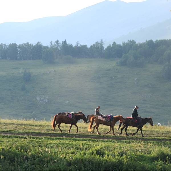 到达禾木草原可以选择从贾登峪出发乘坐区间车,再步行过去。或者选择骑马过去,不过费用有点高。如果有着充沛的体力和兴致,也可以选择徒步的哦。