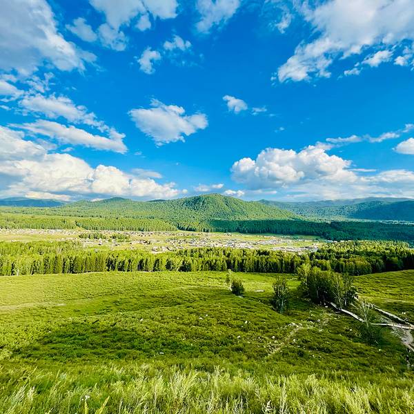 禾木草原紧挨着禾木村的观景平台,景色不错,很开阔,站在草原上可以俯瞰整个村子,草原上牛很多,可...禾木草原紧挨着禾木村的观景平台,景色不错,很开阔,站在草原上可以俯瞰整个村子,草原上牛很多,可以感受一下骑马的乐趣
