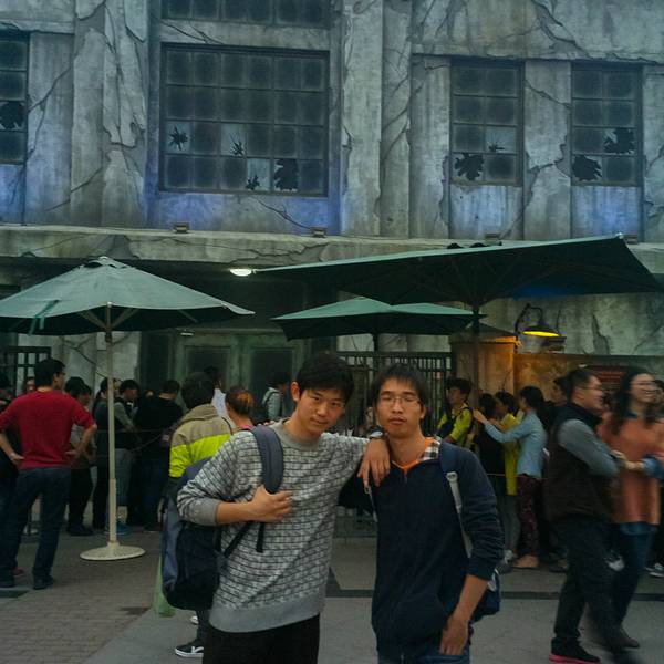 在里面玩了很多项目,头有点晕,挺刺激,尤其是穿越侏罗纪,从高空冲下来的时候,全身都湿透了,还打了4D影院的枪,扫射变异受感染的恐龙。