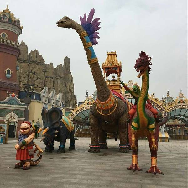 这里的...中华恐龙园是世界最大恐龙主题乐园,也是许多小朋友的最爱,这个主题公园是分为7大部分组成的,所以建筑面积很大,游玩的项目非常之多,最近又新开了一个小羊肖恩嘉年华的一个游乐项目。所以去的人很多。
