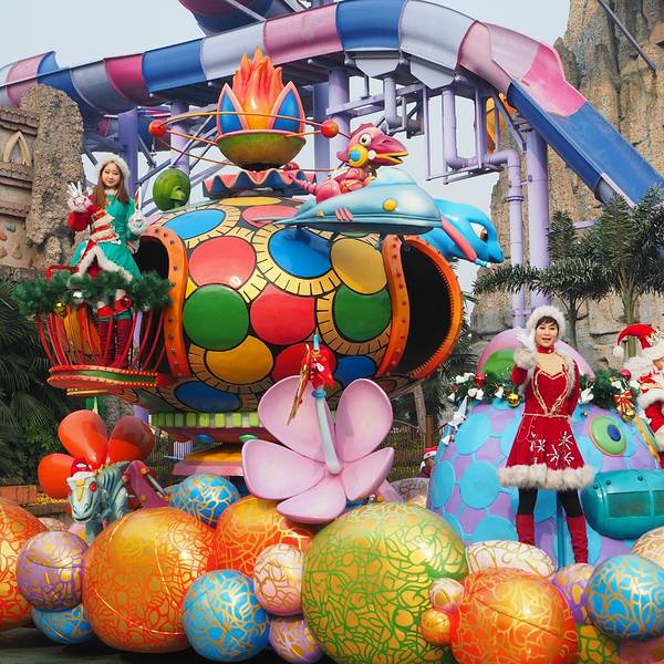 tip:听说恐龙园的4D过山车是亚洲最大的,有胆量的一定要去试一试。进入大门就是库克苏克,这里主要都是大型的游乐设施,还有恐龙园的招牌——通天塔(跳楼机),不过我和妈妈都没有去,这个跳楼机看着就挺吓人。虽然冬天的恐龙园玩的地方虽然比夏天少,但排队等候时间也减少了很多,大多项目等候10分钟都不到。紧邻库克苏克的是魔幻雨林,金刚看上去比较吓人,和海盗船有些像,坐完感觉也就哄哄小朋友吧,并不吓人;里面的4D影院是一个小时一场,整点放映。中华恐龙馆是园区内唯一的恐龙博物馆,内部展示从恐龙诞生到灭绝的过程,馆内的恐龙骨架很多,马门溪龙的很壮观,相对游乐园的喧闹,这里显得安静许多,很适合小朋友学习恐龙知识。恐龙园每天都有定时的演出,此外还有花车巡游,不过下雨天就不会有花车了。我们去的下午下了半天的雨刚停不久,恐龙园的中央大街旁就围满了游客,在景区人员封闭道路后,十多辆花车在人群的簇拥中出场了,有扮作圣诞老人的、还有扮成公主与王子的,场面很热闹,花车上的演员还会时不时和小朋友互动。关于恐龙园内的餐饮,虽然我们是在外面的迪诺水镇用的午餐,但到了里面发现很多东西价格比外面还要便宜,选择上甚至还要更多。