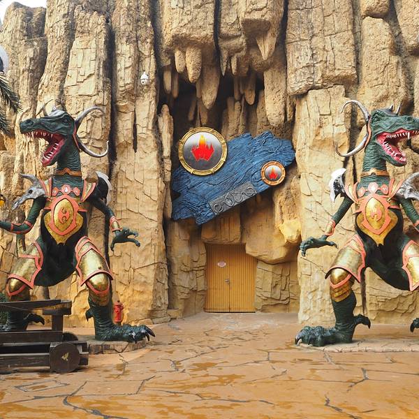 金骆驼 这里既有刺激的娱乐设施,也有轻松休闲的项目,还有孩子们喜欢的动漫体验馆、各种表演,夏季更有动漫...中华恐龙园是一座以恐龙文化为主题的大型游乐园,是环球恐龙城的核心景区。这里既有刺激的娱乐设施,也有轻松休闲的项目,还有孩子们喜欢的动漫体验馆、各种表演,夏季更有动漫水世界和夜公园,是亲子游的好去处...中华恐龙园是一座以恐龙文化为主题的大型游乐园,是环球恐龙城的核心景区。这里既有刺激的娱乐设施,也有轻松休闲的项目,还有孩子们喜欢的动漫体验馆、各种表演,夏季更有动漫水世界和夜公园,是亲子游的好去处。园区分布: 恐龙园内分为欢乐街、雨林冒险、嘻哈恐龙城、库克苏克、鲁布拉、中华恐龙馆六大部分。其中中华恐龙馆是展示恐龙文化的核心场馆;惊险刺激的机械游乐项目主要在“库克苏克”和“鲁布拉”;“雨林冒险”主要有动物表演和真人表演;“嘻哈恐龙城”以动漫体验为主;“欢乐街”有景区服务区域以及纪念品商店。 刺激的游乐项目: 众多高空机械游乐项目使这里成为寻求刺激的首选:你可坐上顶级高空摇摆项目“疯狂火龙钻”,体验一把强烈的失重感;或是登上“通天塔”,寻求瞬间从空中急降的刺激;还有中国唯一的一套4d过山车,让你一秒内体验极速、飞转的快感。轻松休闲的项目: 园内也有轻松休闲的项目,你可在中华恐龙馆中参观到多种中国系列的恐龙化石,在这里你会了解到恐龙文化。你也可以参不那么惊险的游乐项目,如“雷龙过山车”、“龙神古塔”等,让你在微紧张中寻求欢乐;在不同的场馆还可观看音乐剧、魔幻剧和真人特技表演等节目。 带孩子游园: 如果带着孩子,可去“嘻哈恐龙城”的动漫体验馆玩一把电游,或是参观动漫展、看大象表演,这里还有桑巴气球、翼龙骑士等孩子们喜爱的项目;而“动物表演馆”内可看到精彩的海狮表演。 水世界和夜公园: 每到夏季恐龙园会开放“鲁布拉”水世界和夜公园,让孩子们享受一个难忘的暑期。届时在晚上也可照样玩大部分的项目,更可体验水世界的巨型水滑道大喇叭、30米冲击大滑板的刺激,还可以在巨型水寨中展开戏水大战(水世界需另购门票)。开放时间: