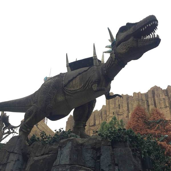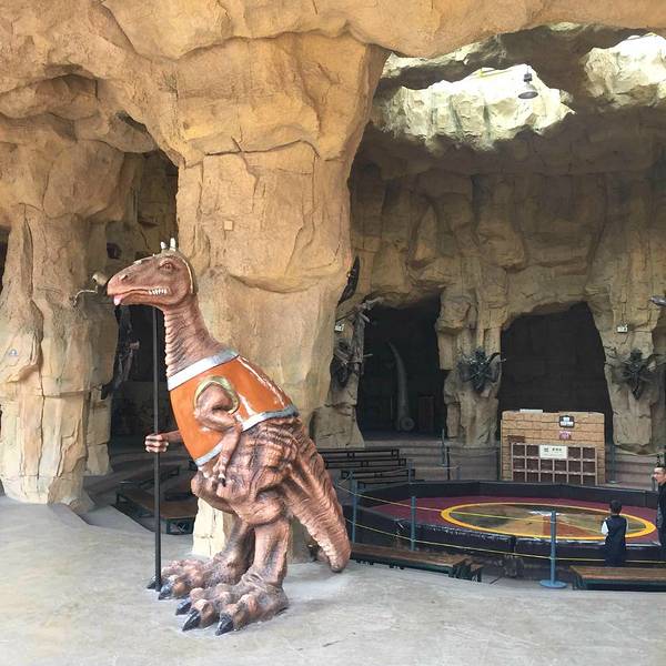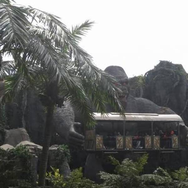 在以恐龙为主题的大型游乐园内,体验各种惊险的游乐项目。