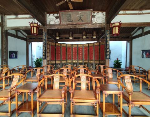 因为其有个水上的戏台而著名,这个戏台借用水作为扩音器,还有明三暗五的开间设计,也算是为了超标住...这里有水榭戏台,其实也是一家私人家宅,因为其有个水上的戏台而著名,这个戏台借用水作为扩音器,还有明三暗五的开间设计,也算是为了超标住宅的无奈和智慧。