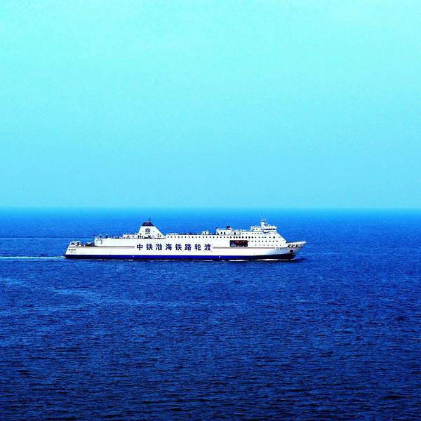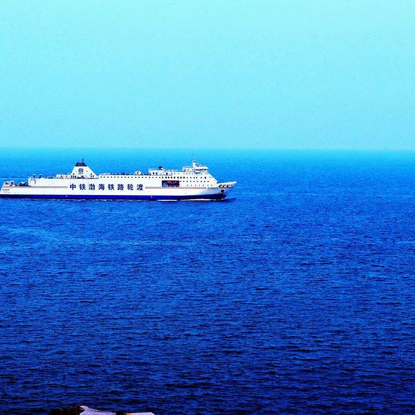 我的运气很好,爬山芝罘岛东口的最高峰的时候就看到了来自渤海大连到烟台的铁路轮渡船。