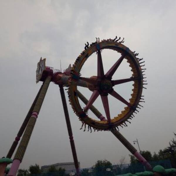 他们几个选好了几个地点说是可以一个个的体验刺激感,我不明觉厉,硬着头皮跟在他们后面。第一个项目是火流星,回来的路上我才感觉自己有多么的的无辜,被他们仿佛推倒了断头台上一样。连续几个空中打转、翻滚,差点没把我心脏给捣腾出来。不要问我感觉如何,我只觉得背后凉飕飕的、可额头上却直冒冷汗。接下来是飞越极限,空中飞舞、大摆锤、维苏威火山、波浪翻滚,恐龙危机。总算是结束游戏了,有一种脱离苦海的感觉。哈哈……