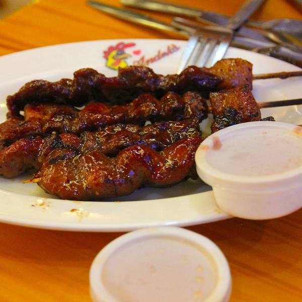 Andok's 第一天因为云层太厚,太阳西下的时候夕阳不是特别美,日落以后我们就打算再去沙滩旁的主路两旁转转,顺便就步行回酒店游泳&健身。 路过另外一家Andok's,五个人一拍即合就进去点了一整只烤鸡和BBQ烤猪肉串,都很推荐!