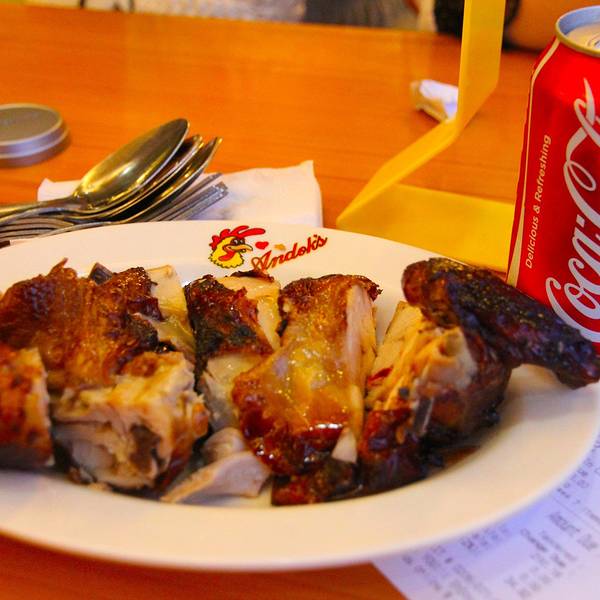 菲律宾著名的连锁烤鸡店,这家店位于D'Mall里面,特色美食是烤鸡,大大小小的透明烤箱里放满了一只只色泽诱人的烤鸡,酥脆的外皮加上软嫩的鸡肉,加上特制的酱料,闻起来香吃起来更香,让人回味无穷。 一整只鸡可以够2-3个人吃,除了烤鸡之外,还有BBQ烤肉串可以选择,配上冰镇饮品,是长滩岛夜宵的不二选择。