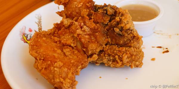 【特色推荐】炸鸡,个人比较喜欢脆皮烤猪肉。梅子酱和肉结合地非常棒。