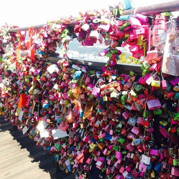 实用 ...一大亮点就是夜景了,如果晚上来到这里,可以看到整个首尔的景色,非常的壮观,所以这里绝对值得一来到达南山也很方便,可以乘地铁4号线在会贤站4号口出来,步行到缆车位置约七八分钟,或者在明洞站下也行,步行过去大约十几分钟,上南山首先要爬个楼梯,然后可以坐缆车上去,缆车往返价是8000KRW,单程是5000KRW...到达南山也很方便,可以乘地铁4号线在会贤站4号口出来,步行到缆车位置约七八分钟,或者在明洞站下也行,步行过去大约十几分钟,上南山首先要爬个楼梯,然后可以坐缆车上去,缆车往返价是8000KRW,单程是5000KRW,缆车约5分钟就可以到山顶,当然你也可以选择走路上去,就是有点累。山顶有首尔塔、泰迪熊博物馆、咖啡厅、餐厅等设施,曾经有电视剧《来自星星的你》在这取过景,所以这里人气还是挺旺的,有个板凳上贴着都教授的画,要和他合影的游客都得排队。这儿比较有特点的就是有个区域可以和爱人买锁锁在上面,各种颜色各种形状非常的特别,然后上面写上一段话把锁锁在这儿,将钥匙丢到山下去,永不分离,寓意不错。当然这里另一大亮点就是夜景了,如果晚上来到这里,可以看到整个首尔的景色,非常的壮观,所以这里绝对值得一来。 展开