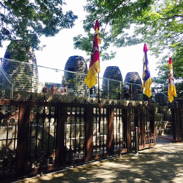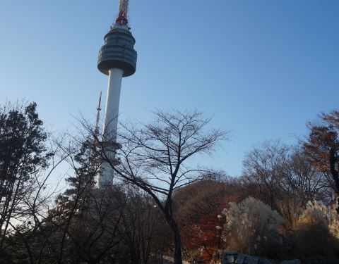南山公园是首尔N首尔塔的所在地。南山海拔265米,虽然山不高, 在山顶可俯瞰周围的美丽景致,是市民喜欢的休息场所。 游览南山公园的路线不止一条,可以乘坐南山缆车去山顶,然后再步行下南山。也可以拾级而上爬上山顶,乘坐缆车下山。另外,乘坐循环巴士也可以直接到达山顶。当然如果你体力足够好的话,时间又充裕,也可以爬上去,再走下来。作为普通游客来说,多数人还是会选择买单程缆车票上山,下山时徒步,沿途欣赏美丽的景色。 缆车的车程不长,大约3分钟左右即可到达N首尔塔下。南山一年四季的景色非常美丽,樱花盛开和赏红叶的时节这里更加热闹。当然,多数游客前来乘坐缆车也是因为韩剧效应,当年的一部《我的名字叫金三顺》以及后面的诸如《花样男子》、《屋塔房王世子》等都到此地来取景过。 到达南山顶上首先看到的就是峰燧台,以前是为给远处的人传递信息而设置的发出信号的地方,如今已经变成游客们的瞭望台了。往前走就可以看到八角亭,这里因电视剧《美丽的日子》而出名。如今人们可以在这里休息,眺望远方。 接着就是游览南山顶上的N首尔塔了,登上观景台可以360度俯瞰首尔全景。你也可以效仿韩剧《来自星星的你》,和心爱的人一起把爱情之锁挂上同心锁墙。浪漫的都市夜景及梦幻灯光秀让N首尔塔魅力非凡。无论白天黑夜还是男女老少,这里都是享受时光的好地方。 游览完了山顶之后,你可以沿着步道一路朝下走,经过坐缆车的地方,再沿途下山。在你的右手边可以看见在南山上缓缓降落和上升的缆车。散步至景色秀丽的地方停下来拍照也是一种乐趣。 到了山脚下,你可以看到喷泉广场,这里也因《巴黎恋人》而为人熟知。喷泉广场的左边的里侧静静地伫立着安重根义士纪念馆。纪念馆面前排列着许多纪念碑,上面刻着安重根的作品。从喷泉广场下台阶,就能看到三顺台阶,很多人都因为这部偶像剧来这里爬一下。