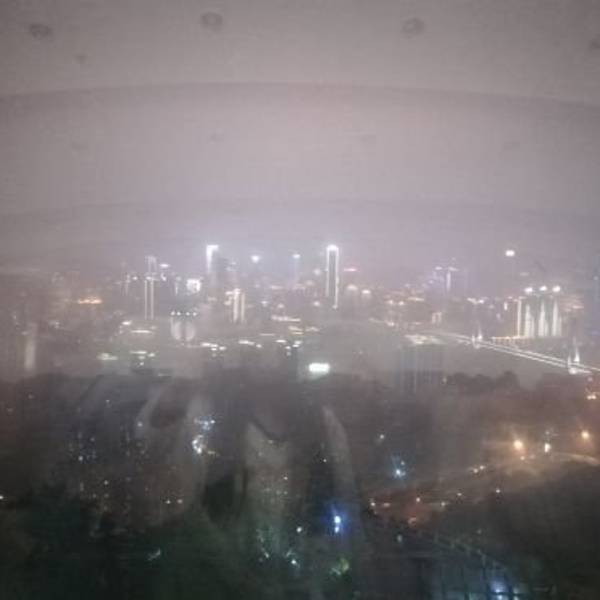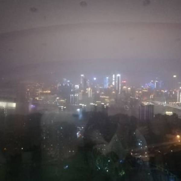 门票¥30/人 学生票¥15/人 这里其实就是一个观景台,上面有一个高倍望远镜,五块钱可以看两分钟,扫码付款哈。在这里可以将重庆一览无余,夜晚的重庆灯火辉煌的很有感觉。但我们去那天重庆大暴雨,雾都重庆也不是盖的,全是雾气,但还是可以朦胧的看到灯火绚烂的重庆,还可以看到解放碑WFC大厦,给我激动的哈哈哈,朦胧的重庆就是另一番感觉。
