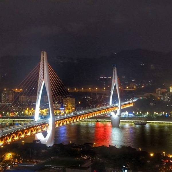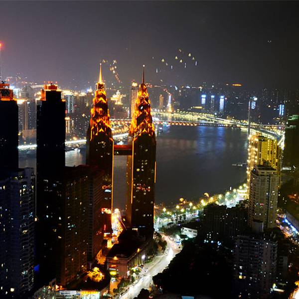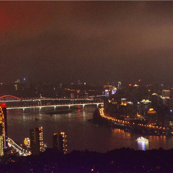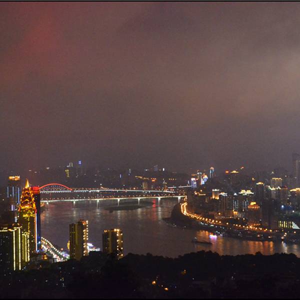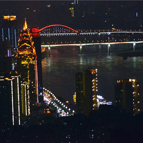 由于地理位置的优越,现代的灯饰艺术的华彩,站在视野开阔的“一棵树”观景台,实在是一种美的享受。远远望去,渝中区象一个发光的宝岛,通体透明;环抱的两江,流光溢彩;飞跨的长桥,轮廓清晰;层见叠出,错落有致,色彩缤纷的整座城市,在夜空的衬托下,难分天上人间。