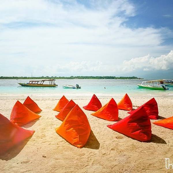 【怎么玩】浮潜、日光浴、冲浪,但没有水上摩托这一类的娱乐项目,正好,安静了许多。沙滩上有一堆沙滩椅供游客享受。在吉利岛,骑车是最好的交通方式,可以绕着岛骑上一圈儿,很快就能完成,边运动边欣赏美景,也算是一种旅行方式。全程1个小时左右。