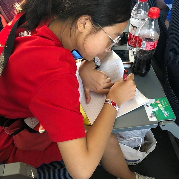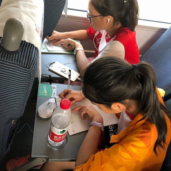 由于我们是下午16:18的火车,下午的景区玄武湖就没时间游览了,导游带着我们开车绕了一下,从车上遥望了玄武湖的美景。留着以后再来欣赏吧!由于赶到南站还不到三点,孩子们撒欢似的在候车大厅闲逛起来,我给他们...由于我们是下午16:18的火车,下午的景区玄武湖就没时间游览了,导游带着我们开车绕了一下,从车上遥望了玄武湖的美景。留着以后再来欣赏吧!由于赶到南站还不到三点,孩子们撒欢似的在候车大厅闲逛起来,我给他们分好小组,一再嘱咐后,最后留我一个看着这些行李。唉!要踏上返程高铁了,孩子们意犹未尽,都说还没玩够呢,就该回去了。我能告诉你们一个消息吗?你们的父母都在家等不及要提前去接站了。此处《游子吟》十分应景!女孩们很听话,在车上写最后一篇旅途笔记。专注认真的孩子最美!男孩开始很不情愿动笔,我提出:如果写不完不能发晚餐。很快,他们开始行动了!难得见两胖如此认真!愉快的晚餐时光!汉堡、鸡翅、可乐是孩子们的最爱!很少孩子点米饭套餐。尽情享受这顿晚餐吧!一会儿就要回到父母身边和小伙伴们告别了!我们的洛阳小分队也和我们同时到达秦皇岛站,家长们都早已在广场等候。把每个孩子平安交给家长才是我们活动的圆满结束。感谢孩子们的一路相伴!我们的旅行结束啦!