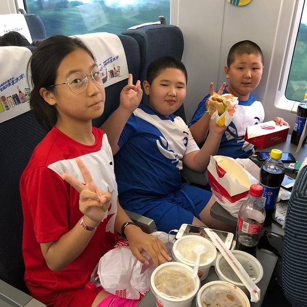 - 要踏上返程高铁了,孩子们意犹未尽,都说还没玩够呢,就该回去了。汉堡、鸡翅、可乐是孩子们的最爱